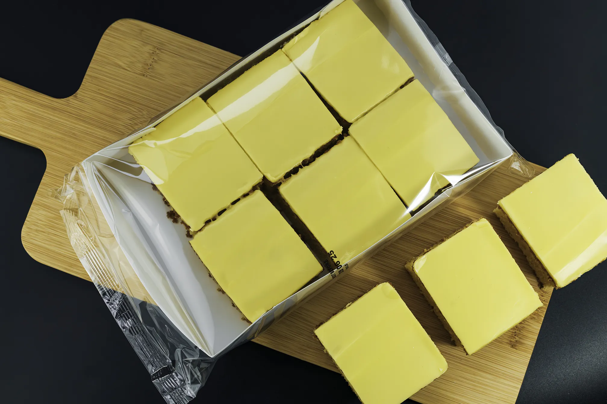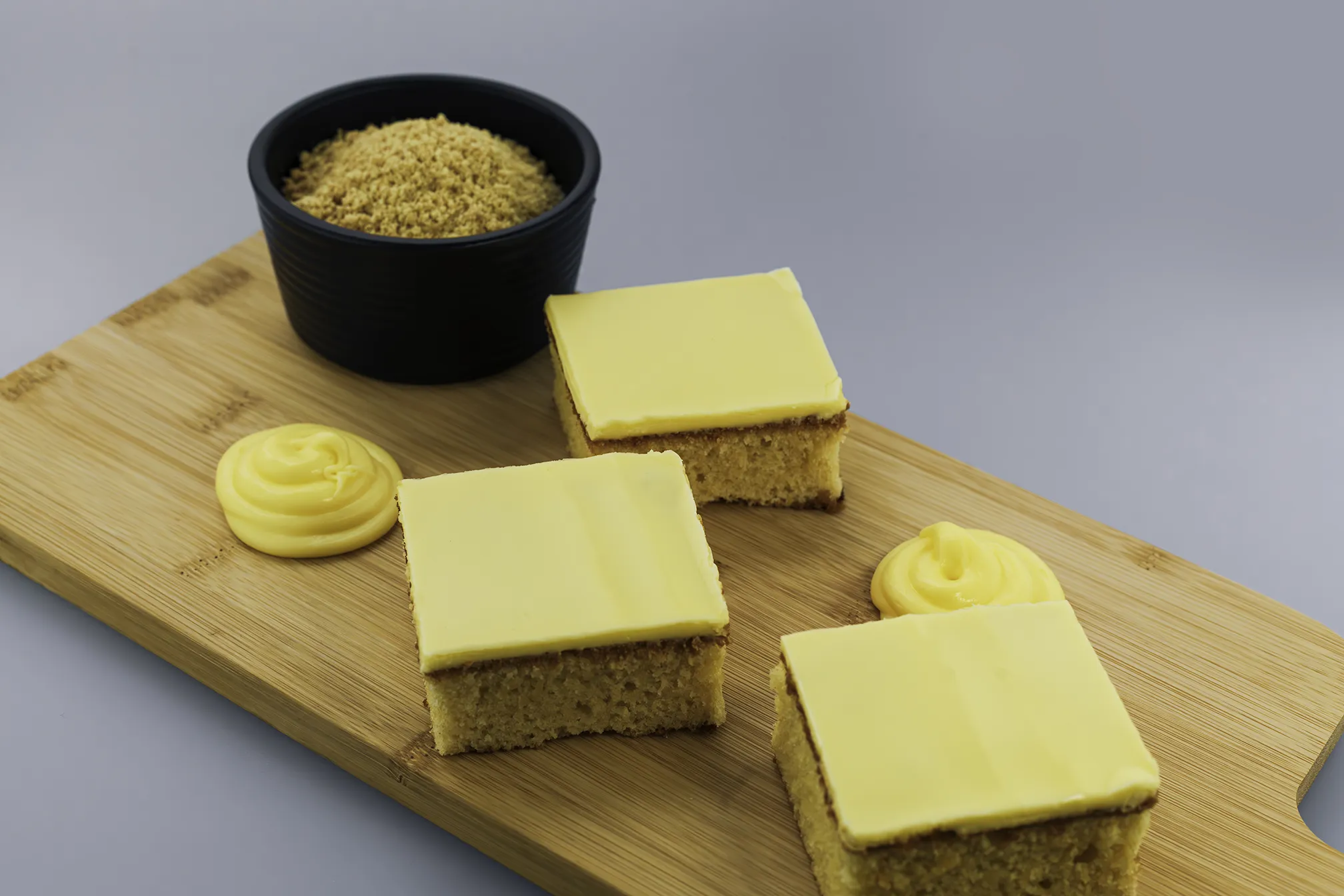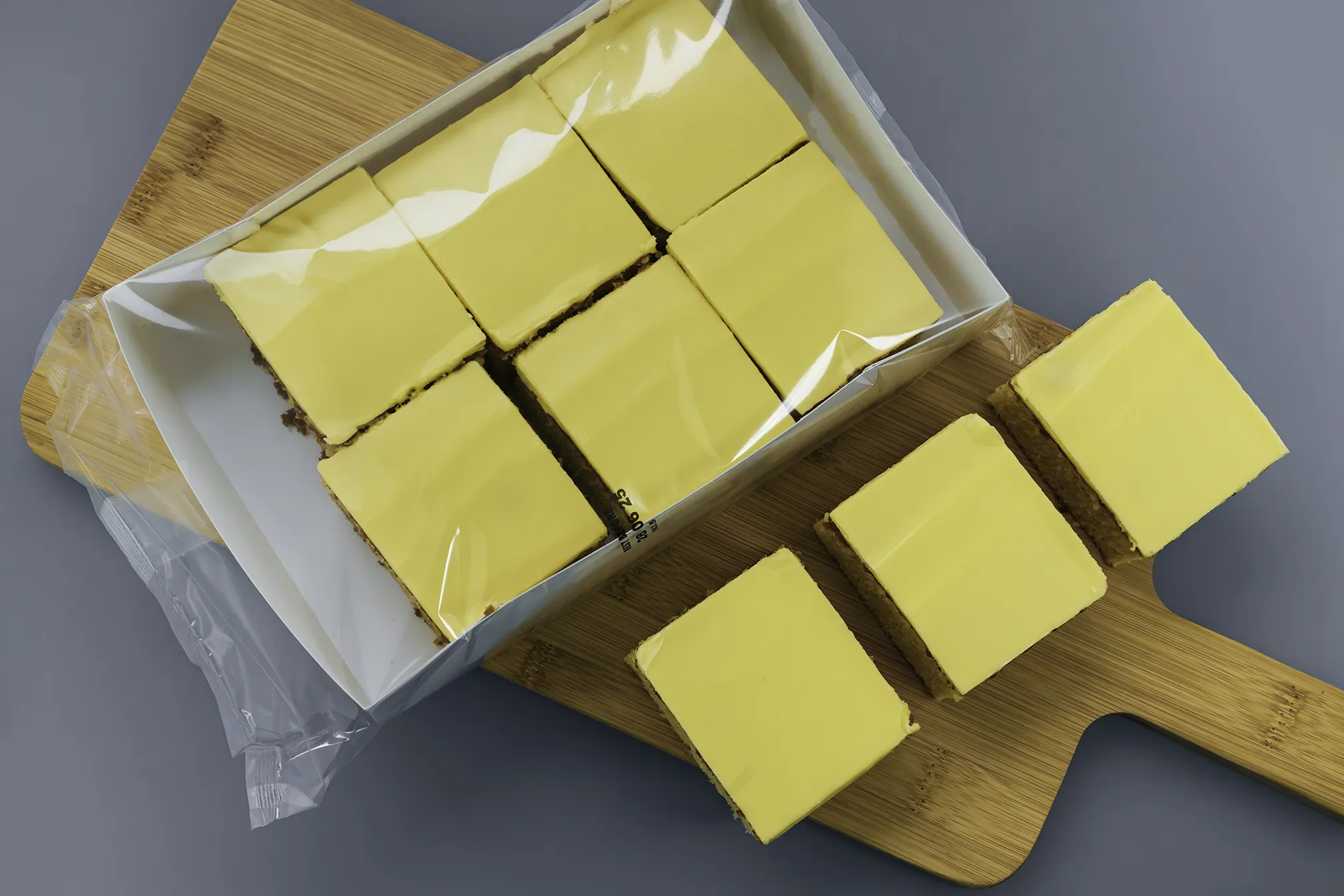 A moist lemon sponge topped with a layer of smooth fondant icing.