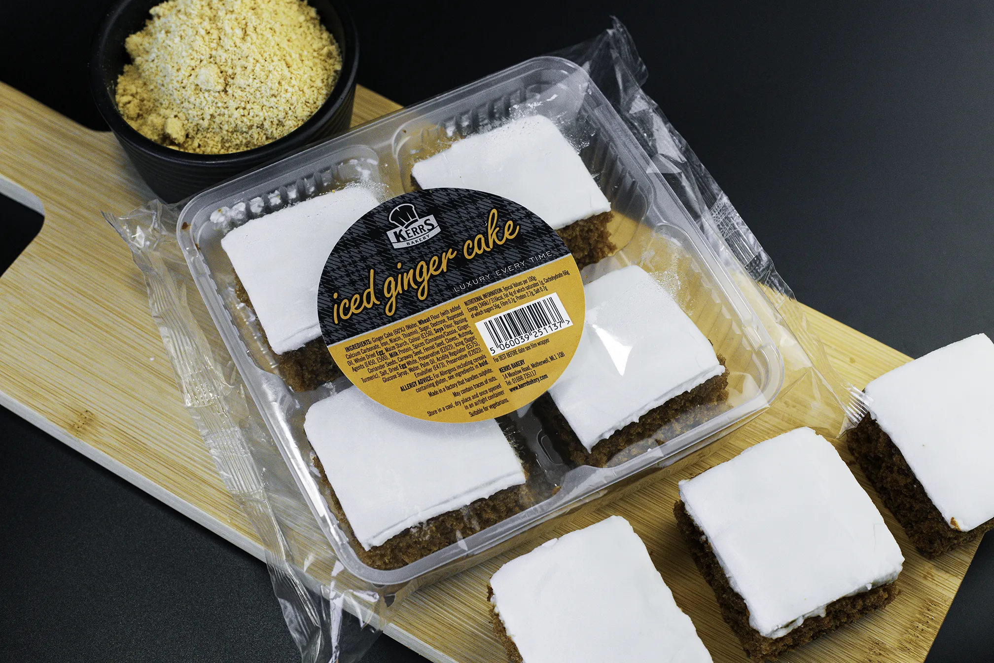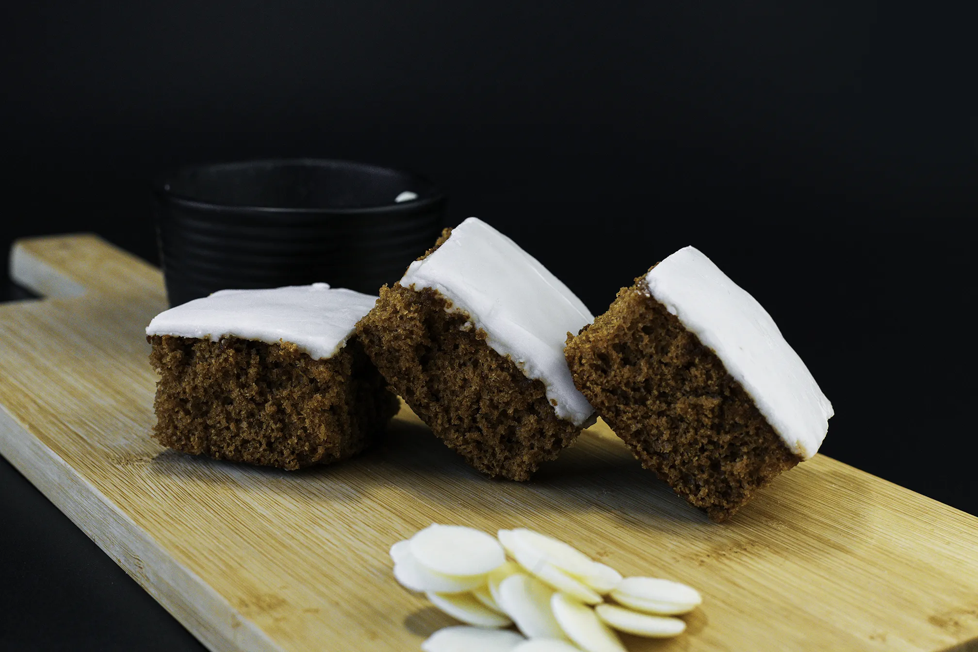 A moist ginger sponge topped with a layer of smooth fondant icing.